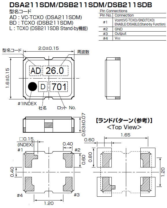 消費電流 | +1.5 mA max(. f≦26MHz)/ +2.0 mA max(. f>26MHz) | |||