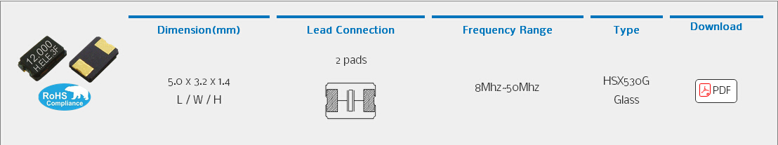 HSX530G諧振器,臺灣進口石英晶體諧振器,HELE晶振小型表面貼片晶振型,是標準的石英晶體諧振器,適用于寬溫范圍的電子數碼產品,家電電器,播放器,單片機等領域.可對應8.000MHz以上的頻率,在電子數碼產品,以及家電相關電器領域里面發揮優良的電氣特性,滿足無鉛焊接的回流溫度曲線要求.