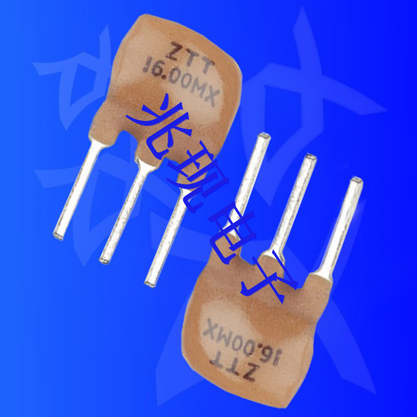 壓電陶瓷諧振器,ZTT16.00MX,陶瓷振蕩子,兆現電子生產的陶瓷諧振器ZTT系列是在原有的ZTA晶振內部添加了內置負載電容,引線腳于原來的二腳演變成三腳直插式,這樣一來減去了外部線路設計時可以省去電容部分,大大減少了線路空間,且可減少元器件的數量,增加穩定性,減小尺寸,為電路設計者們提供了非常的方便,并且外形尺寸也沒有太大的改變.此規格的頻率范圍在 2.0 MHz 至 60.00 MHz,頻率公差為 ±0.5%,±0.3%.ZTT三腳陶瓷諧振器產品系列可用于振蕩電路設計,無需外部負載電容器,既獲得了高密度安裝,又降低了成本.產品被廣泛應用到數碼電子產品,家用電器,無線發射器,調音線控等電子產品.