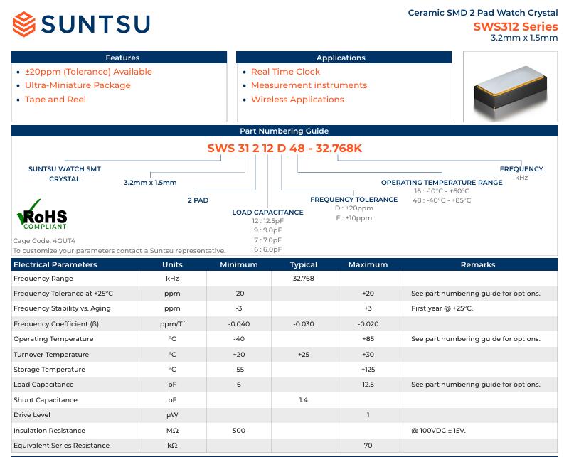 | 晶振編碼 | SWS31212D48-32.768KT |