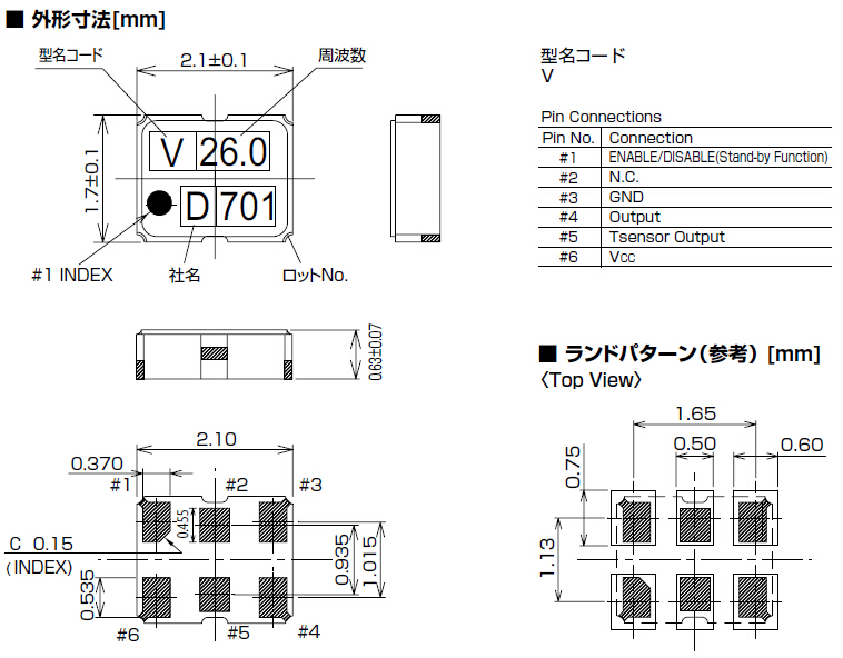 溫度特性 | ±15×10−6 max./ −30℃+85℃ |