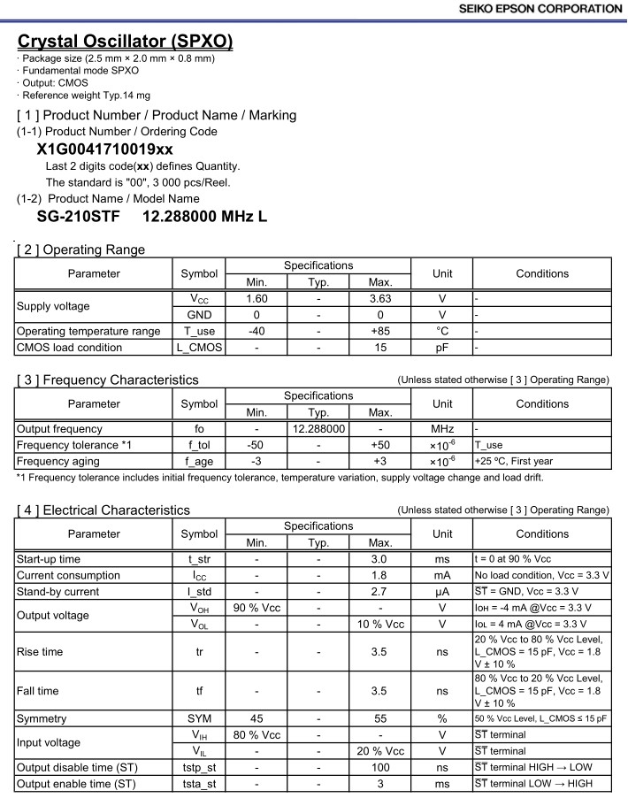 X1G0041710114 | SG-210STF | 19.440000 MHz | 2.50 x 2.00 x 0.90 mm | CMOS | -40 to 85 °C | +/-50 ppm |