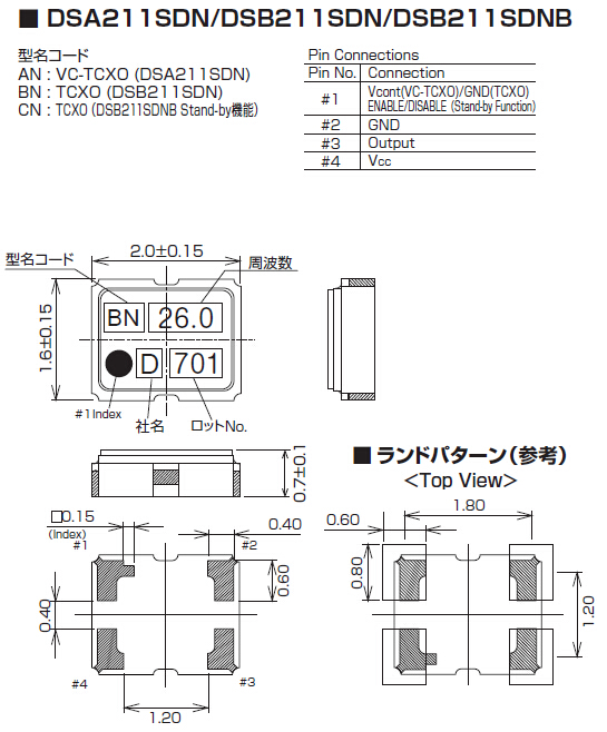 KDS | 1XXA20000CAA | DSA221SDN | 2520 | 20.000M | 3.3V | 1.5ppm | 4腳 | |