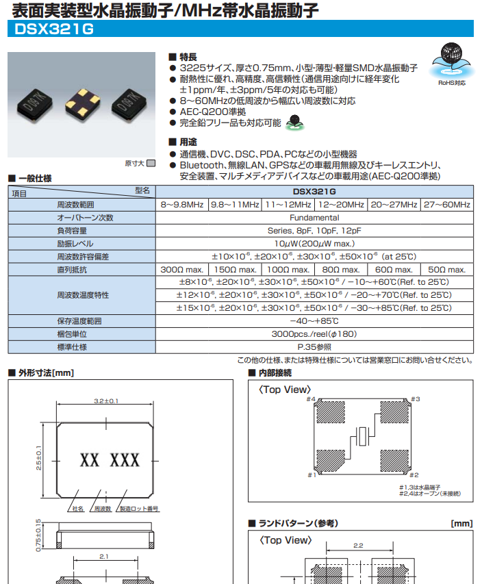 更多>>KDS石英晶體諧振器1C208000BC0對應型號DSX321G-8M