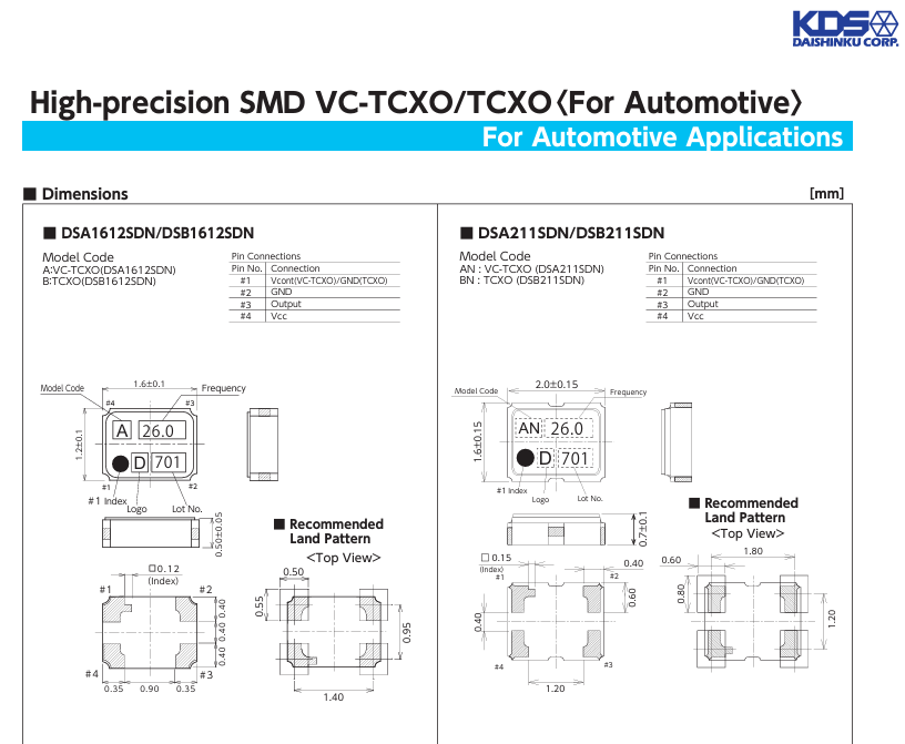 1XXH26000MCB溫補晶振,DSB1612SDN日本晶振,KDS大真空晶振