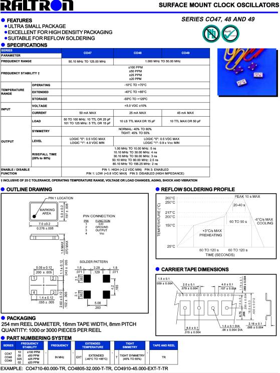 CO49 系列 50 MHz 7 x 5 mm 5 V ±50 ppm 表面貼裝 時鐘振蕩器 | ||||||||