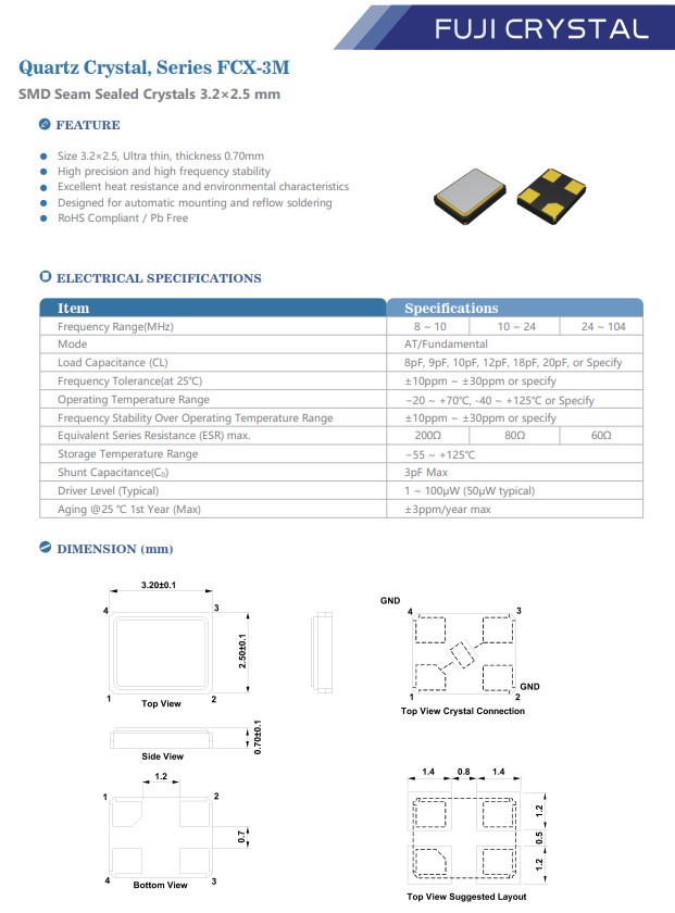 日本Fuji Crystal晶振,FCX-3M車規(guī)晶振,寬溫晶振
