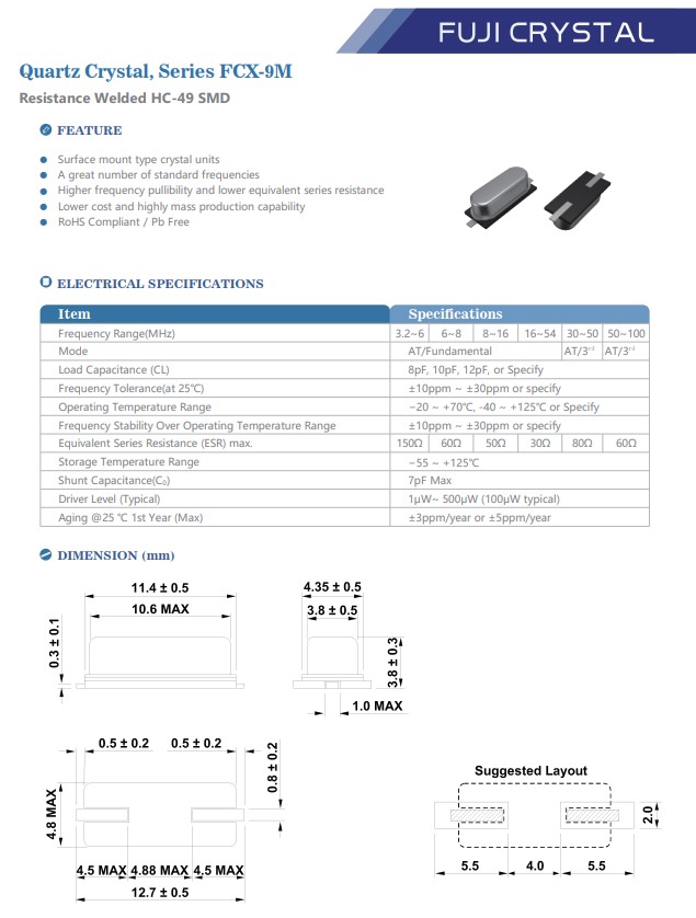 日本富士晶振,49SMD貼片晶振, Fujicom無(wú)源晶振微孔霧化片