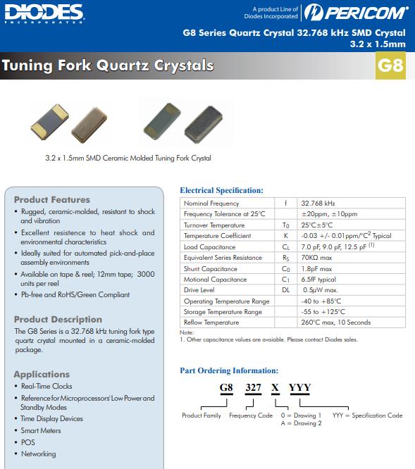 G83270022 | Diodes晶振 | SaRonix-eCera™ G8 | 32.768kHz | - | 2-SMD, No Lead |