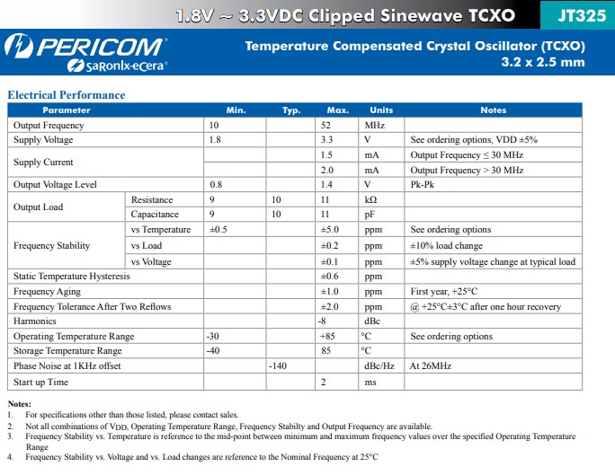 JT325 | 削波正弦 | 1.8 - 3.3 | 0.5 - 5.0 | -40~85 | - | 4 |