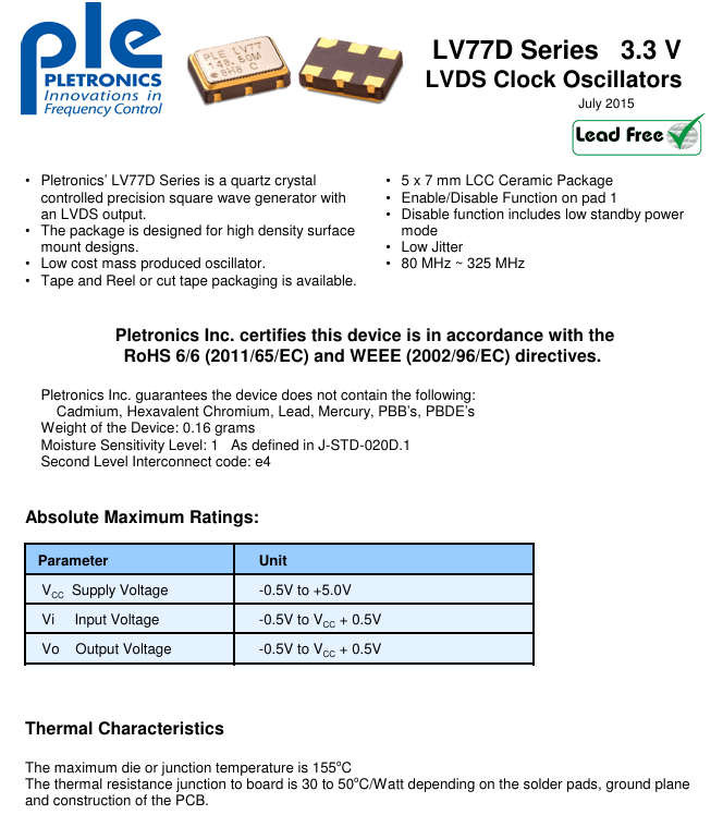 更值得稱(chēng)道的是,普銳特貼片晶振在技術(shù)創(chuàng)新中始終堅(jiān)守環(huán)保責(zé)任.該設(shè)備嚴(yán)格規(guī)避鎘、六價(jià)鉻、鉛等有害物質(zhì),完全符合環(huán)保標(biāo)準(zhǔn),展現(xiàn)出企業(yè)對(duì)生態(tài)環(huán)境的敬畏之心.0.16克的輕量化設(shè)計(jì)與濕度敏感等級(jí)1的特性,既減少了生產(chǎn)過(guò)程中的資源消耗,又提升了元件在不同環(huán)境下的適應(yīng)性.從結(jié)到印制電路板30至50攝氏度/瓦特的熱阻變化,更是兼顧了散熱效率與使用安全,讓技術(shù)進(jìn)步與環(huán)保安全并行不悖.