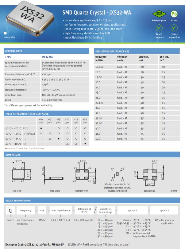 由于其高頻穩定性和極低的ESR,這些特殊的JXS-WA晶體滿足了射頻收發器或物聯網應用所必需的高要求.