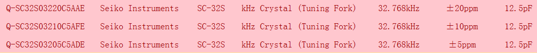 客戶通常詢價三款精工晶振的編碼Q-SC32S03220C5AAE和Q-SC32S03210C5AFE,Q-SC32S03205C5ADE代表什么參數要求的,這個你要對比下來就知道是PPM不一樣,偏差的精度是不一樣的,所以沒有確認好就會影響采購到的石英晶振產品不匹配使用,達不到自己產品參數應用要求效果.