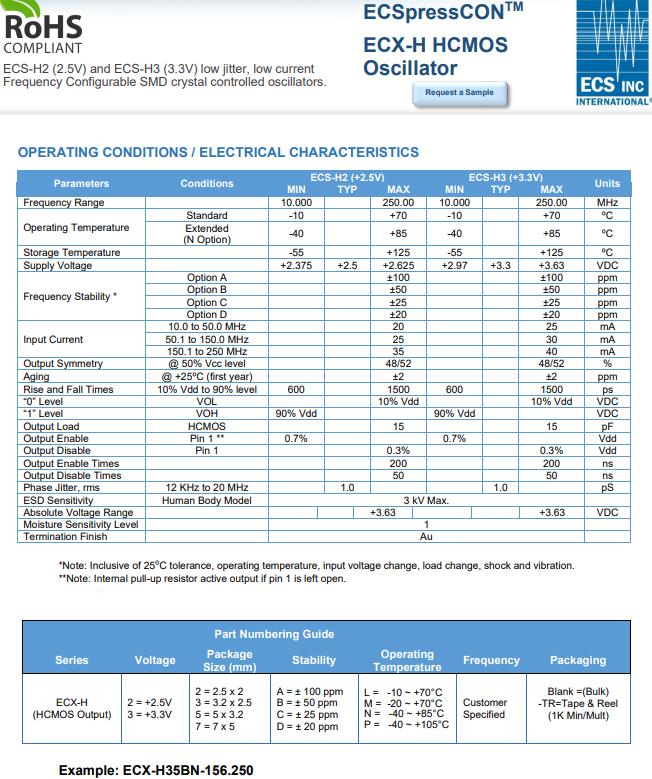 ECX-H25CM-250.000 | ECS晶振 | ECSpressCON™ ECX-H | 250MHz | -20°C ~ 70°C |