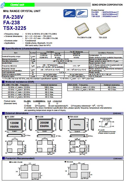 X1E000021011916 | 3.2 x 2.5 x 0.6mm | TSX-3225 | 16.000000 MHz | 12 pF | +/-10 ppm | +/-20 ppm | -40 to +85 °C | ≤ 60 Ω |
