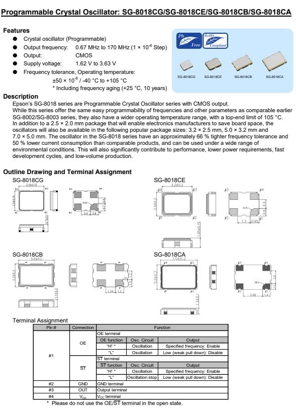X1G005571018800 | SG-8018CA | 14.318180 MHz | 7.00 x 5.00 x 1.40 mm | CMOS | 1.620 to 3.630 V | -40 to 105 °C |