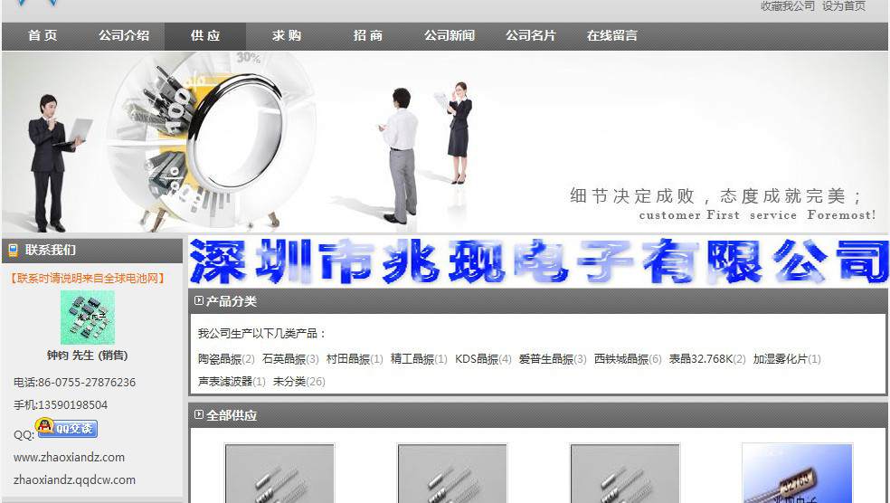 隨著這幾年公司的發(fā)展逐漸走上的軌道,不僅讓更多的客戶認識到了深圳市兆現(xiàn)電子有限公司,還讓更多的人使用上了好的產(chǎn)品。公司以晶振做為主打 產(chǎn)品,以產(chǎn)品質(zhì)量、性能做廣告,旗下石英晶振、進口晶振、石英晶體振蕩器、溫補晶振、聲表面諧振器、微孔霧化片都在網(wǎng)上排名很靠前。