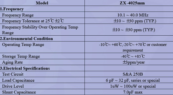 ZX-4025晶振,石英晶振,石英晶體諧振器