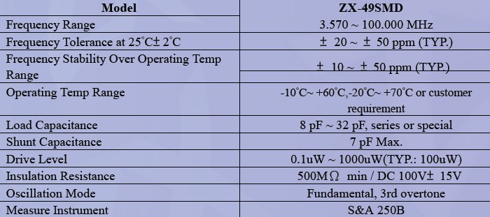 ZX-49SMD,貼片晶振,石英晶振